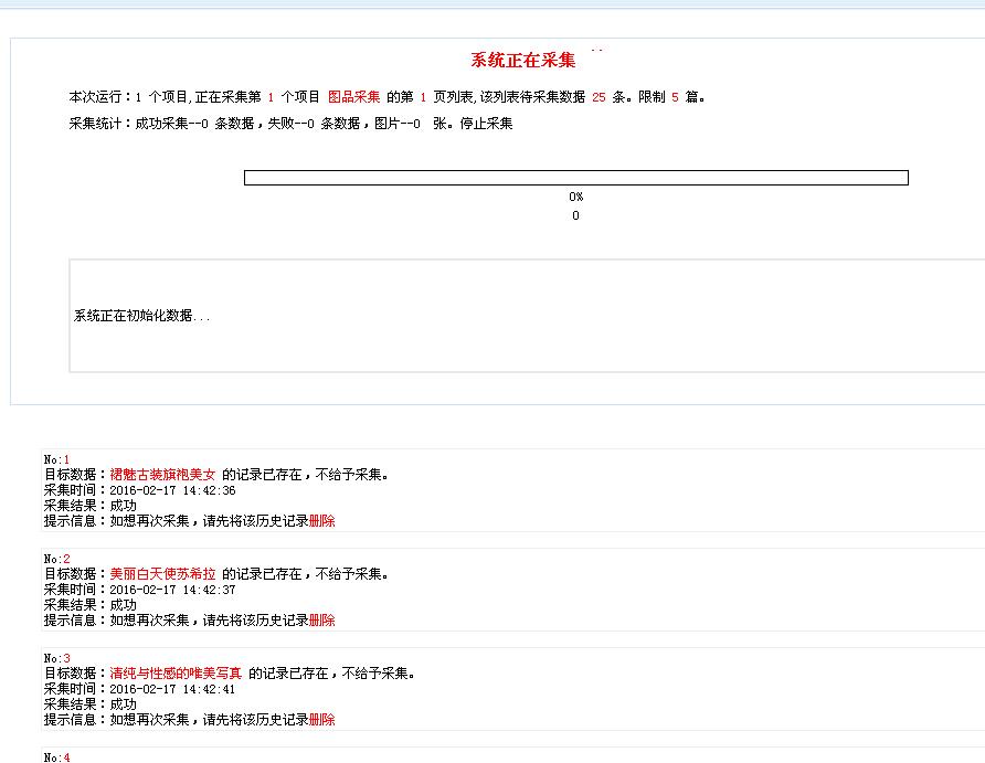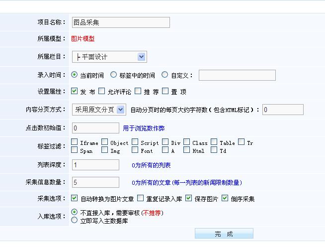 三、以上設置好后點擊完畢,然后就可以進行采集了
